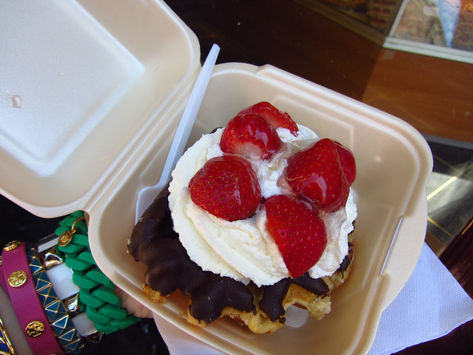 Honestly I would have been happy with just a plain Belgium waffle from this place.. but the chocolate, whip cream and strawberries were like the cherry on top it was SOOO GOOD!!! The Hubs was actually fighting me for this even though he got himself the chocolate eclair hahahhaha.